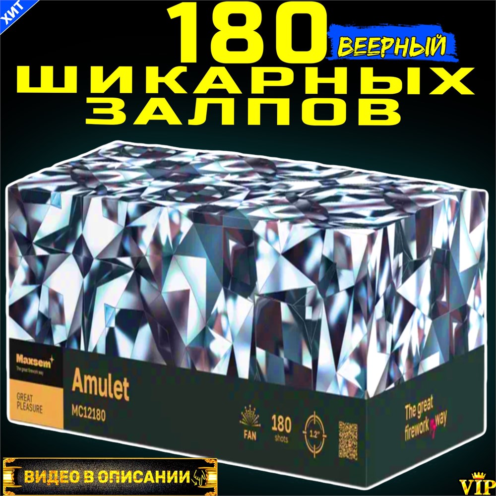 Премиум Салют 180 СуперБольших залпов, огромный веерный фейерверк Amulet (Европа)